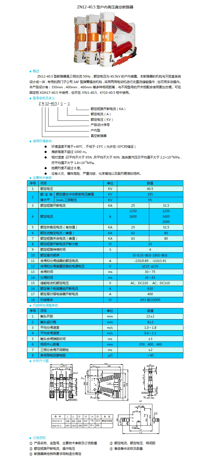 ZN12-40.5型戶內(nèi)高壓真空斷路器