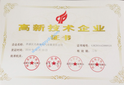 喜報(bào)!孝感漢光森源電氣有限責(zé)任公司被認(rèn)定為高新技術(shù)企業(yè)